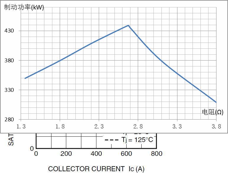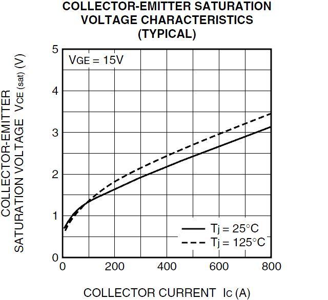 查到三菱CM400DY-34A和英飛凌FZ400R17KE3的晶體管特性與其完全相同,因此可以使用他們的“VCE-IC”特性曲線,獲得制動(dòng)晶體管的導(dǎo)通壓降。