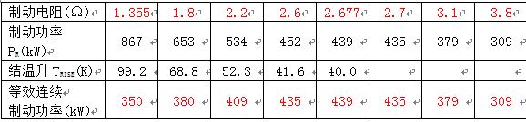 2.如果TRISE ≤ TRISE-MAX ,說明此阻值下的制動(dòng)功率PR能夠滿足100%制動(dòng)率的要求;