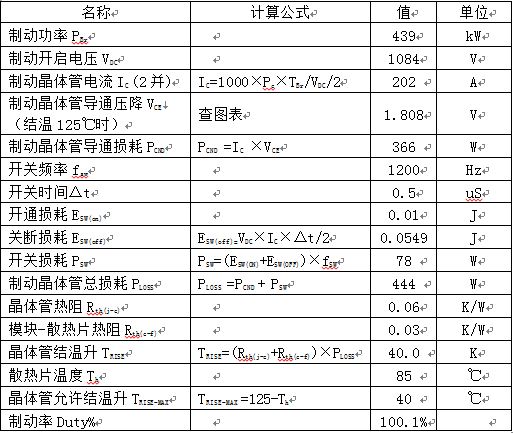 1.首先假設(shè)一個(gè)制動(dòng)功率,比如355kW,然后按此功率算出制動(dòng)晶體管的結(jié)溫升TRISE;