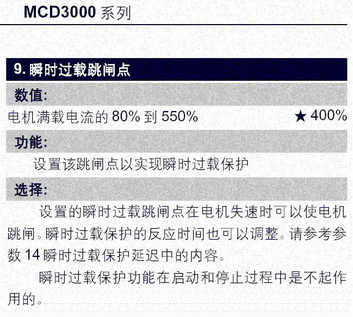 上圖是丹佛斯軟起動器瞬時過載保護(hù)的整定參數(shù)。