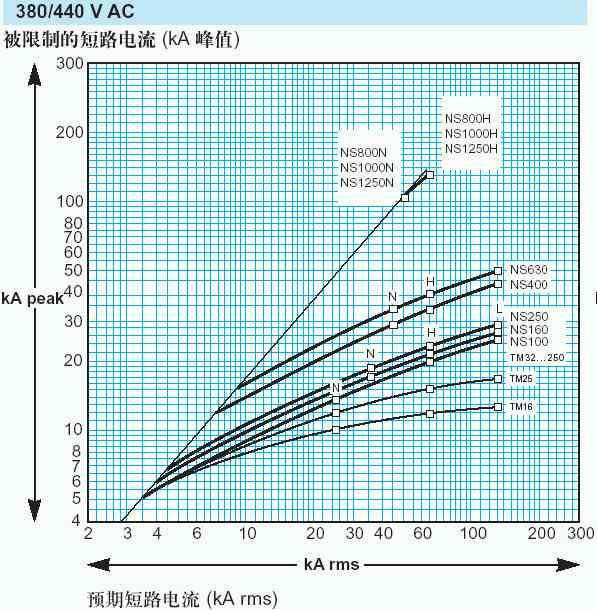 再看一下施耐德NS斷路器的高級功能 — reflex能量跳閘功能,據(jù)稱在短路故障時能產(chǎn)生一種強大氣體壓力直接作用于一個活塞機構(gòu),使斷路器快速可靠地分?jǐn)唷S捎趧幼鞣浅Q杆伲?lt;10ms,所以如同快速熔斷器一樣,具有自然抑制短路電流的功能。其限流特性曲線如下圖: