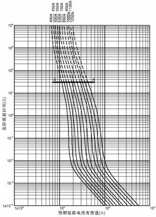弧前時間具體值可從圖五查得。可以查到額定電流800A的快速熔斷器,當(dāng)短路電流為13222A時,弧前時間<2mS;當(dāng)短路電流為99165A時,弧前時間< 0.1mS。
