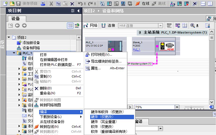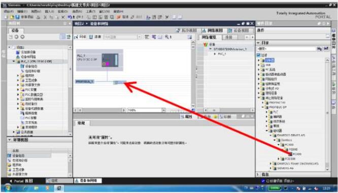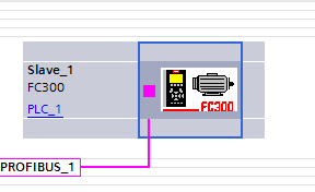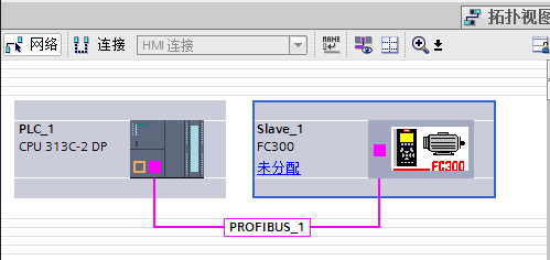 將變頻器 FC300 拖動到 PROFIBUS_1 連接線處后,PLC 和變頻器連接在一起,F(xiàn)C300 顯 示為未分配。