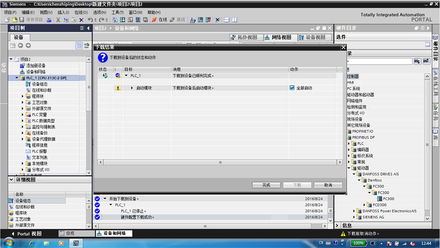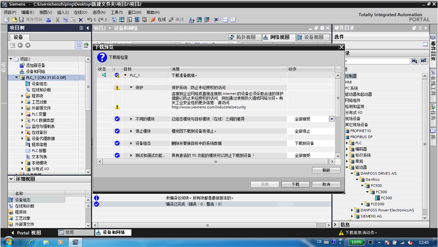 七、:配置丹佛斯變頻器(進入‘網(wǎng)絡(luò)視圖’-打開右側(cè)‘硬件目錄’-選擇‘其他現(xiàn)場 設(shè)備’-‘PROFIBUS DP’-‘驅(qū)動器’-‘DANFOSS DRIVESA/S’-‘DANFOSS’-‘FC300’-‘FC300’-‘FC300’),將其如圖七所示拖動。