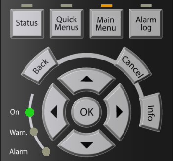 丹佛斯變頻器參數(shù)通過操作面板進行設(shè)置。其中,方向鍵代表設(shè)置對象的切換選擇,上下兩鍵對設(shè)置值進行設(shè)定,OK鍵代表確認(rèn)選擇,Back代表返回上一級菜單,Cancel代表取消當(dāng)前設(shè)置選擇,Info鍵代表查看幫助信息。