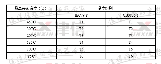 這是與氣體點燃溫度有關(guān)的電氣設(shè)備(假定環(huán)境溫度為40℃時)的最高表面溫度,點燃能量與點燃溫度無關(guān)。在標準BS5345第一部分中列出了所有可燃性氣體和其組別。