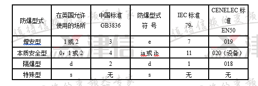 ①各種防爆型式的對應(yīng)標準