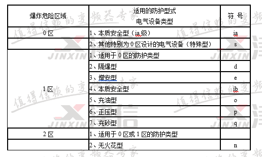 ②氣體爆炸危險場所用電氣設(shè)備防爆類型選型表