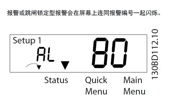 只有當(dāng)變頻器的供電電壓缺失并且 14-10 主電源 故障 未設(shè)成 [0] 無功能 時(shí),此警告/報(bào)警才有效。 |