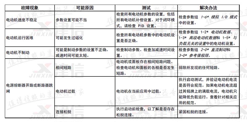 | 17 | 控制字超時(shí) | X | X | 沒有信息傳送到變頻器。 | |