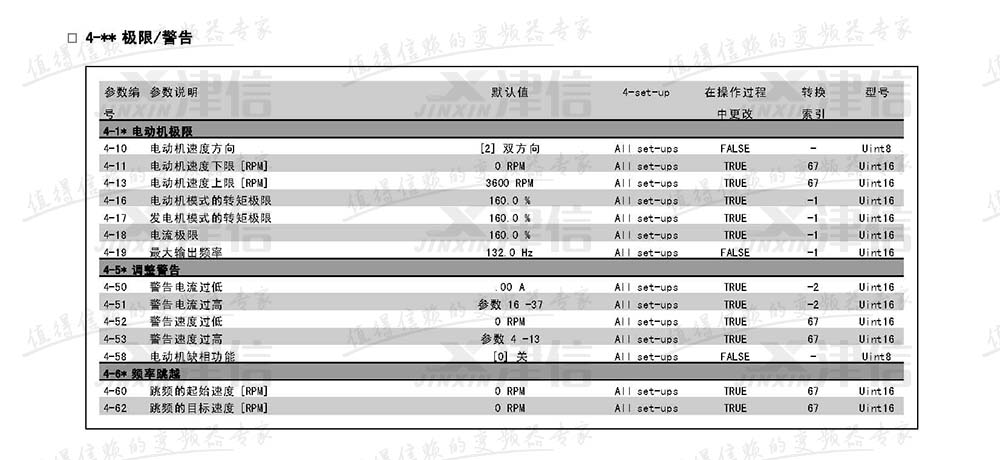 4、FC302變頻器極限和警告參數(shù)設置說明
