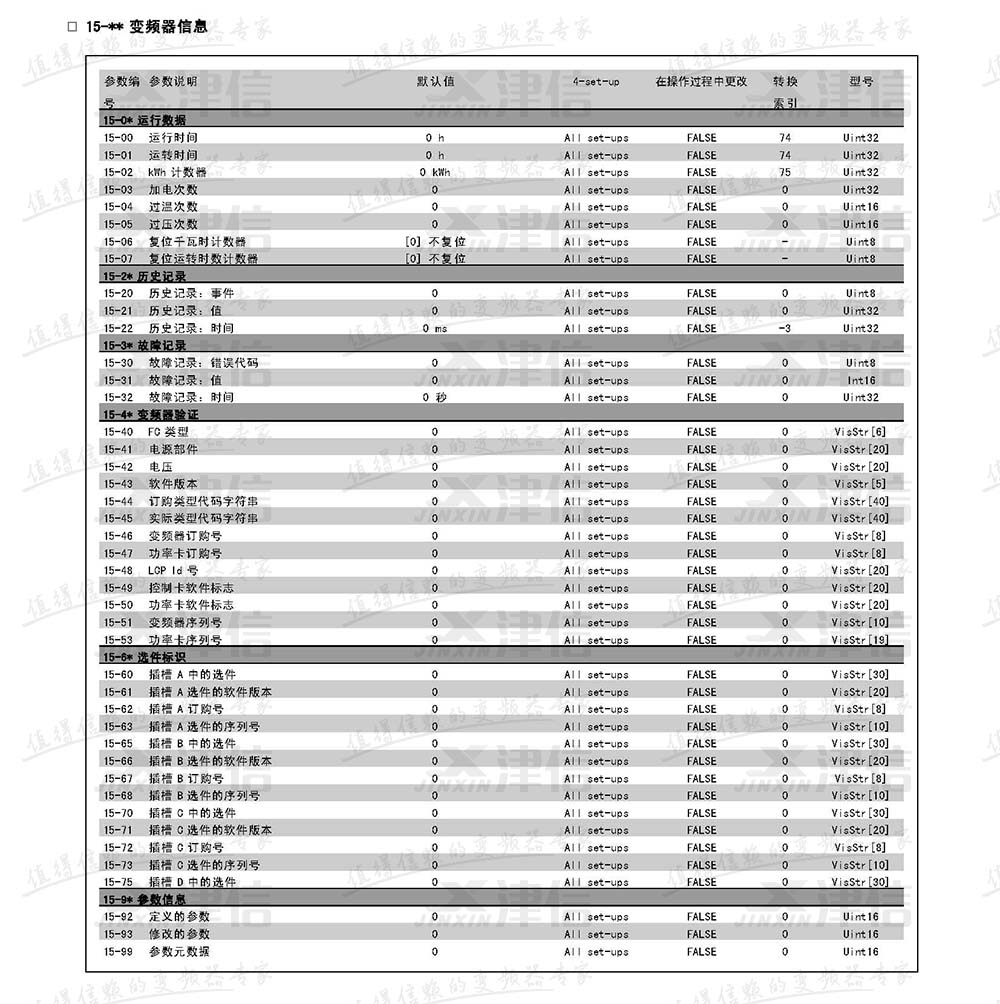 15、變頻器信息參數(shù)設置說明