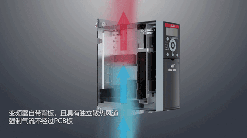 3、變頻器自帶背板,且具有獨(dú)立散熱風(fēng)道,強(qiáng)制氣流不經(jīng)過PCB板