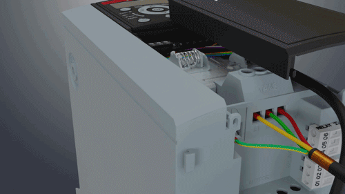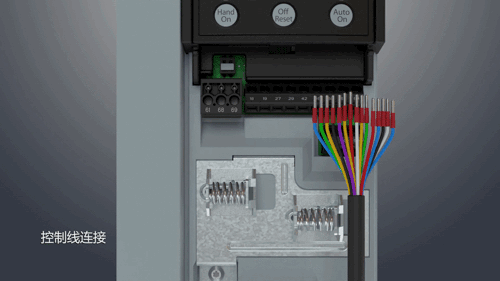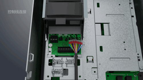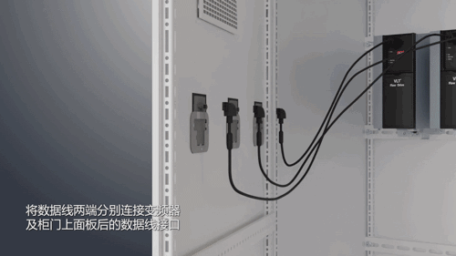 2、將數(shù)據(jù)線兩端分別連接變頻器及柜門上面板后的數(shù)據(jù)線接口