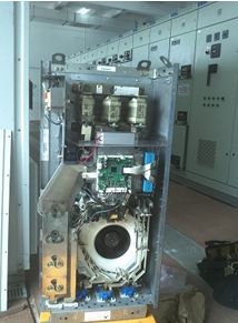 該變頻器更換逆變模塊,將板卡及電容箱依次安裝后,測試,符合上電條件。給變頻器送電,開機、輸出電壓平衡,帶負載到額定電流,變頻器發(fā)熱也正常,該變頻器修復(fù)。