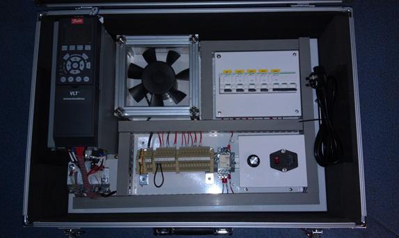 2013年1月,由上海津信變頻器公司和贏創(chuàng)德固賽特種化學(xué)有限公司共同研制開發(fā)了一款以丹佛斯變頻器為核心部件,專為模擬現(xiàn)場(chǎng)風(fēng)機(jī)水泵進(jìn)行通訊控制而設(shè)計(jì)的通訊測(cè)試箱(如下圖所示)。