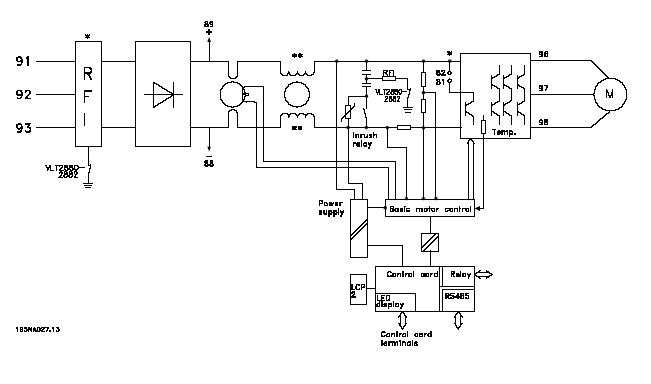 VLT2800系列變頻器內(nèi)部系統(tǒng)框圖見下圖:
