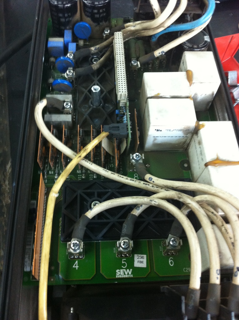 由于變頻器使用的場合比較特殊,并且該機器配備同步控制功能,客戶對于該機器保養(yǎng)很好,機器內部比較干凈。因此該機器發(fā)生故障肯定是由于器件本身損壞導致。