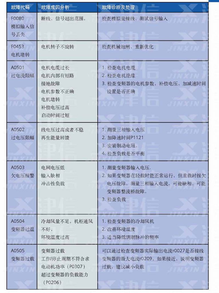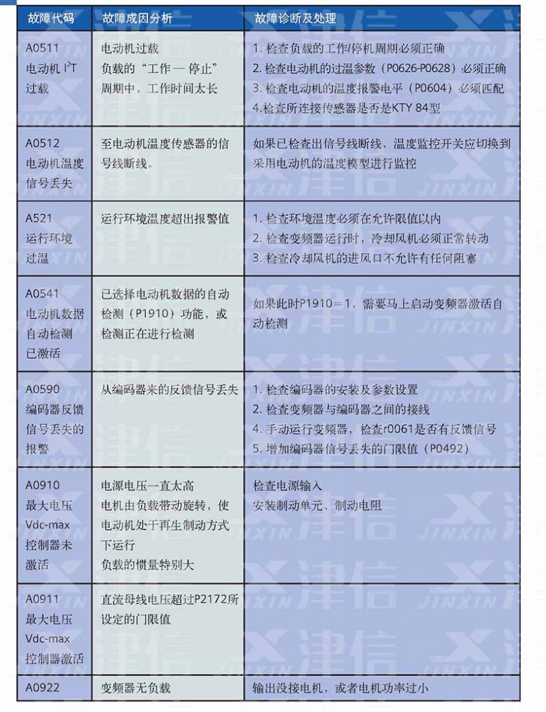 西門子MM440變頻器故障代碼和維修措施