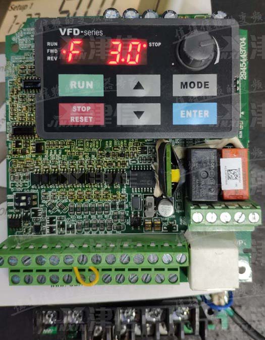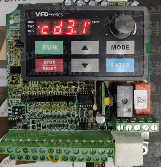 用戶(hù)送修一臺(tái)臺(tái)達(dá)C200系列變頻器到上海津信維修服務(wù)中心(如下圖1),送電顯示cd3.1(如下圖2所示),不可復(fù)位,斷電重新上電后依舊報(bào)警,查看C200系列說(shuō)明書(shū)可知,該故障為W相電流偵測(cè)異常。