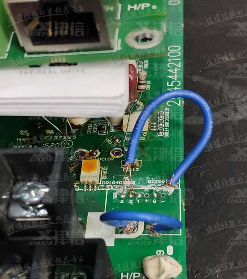 將電流傳感器拆除做單板測(cè)試,送電后仍然報(bào)警cd3.1,根據(jù)電流傳感器線(xiàn)路,將板卡上的G點(diǎn)和1,2,3三個(gè)點(diǎn)短接(如下圖3所示) 傳感器型號(hào):6900,(如下圖4所示)