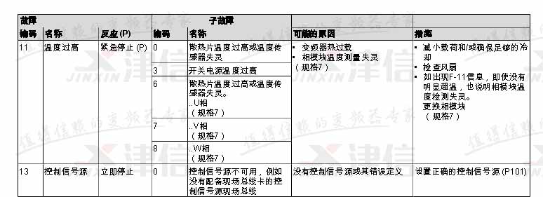 SEW變頻器故障代碼F11,F(xiàn)13,具體如下: