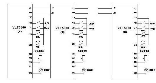 在工業(yè)輸送設(shè)備中,需要按照一定的速比實(shí)現(xiàn)多臺(tái)電機(jī)聯(lián)動(dòng)。以往要實(shí)現(xiàn)此功能大都是通過機(jī)械裝置來完成,電氣方面的解決方案往往依靠大量的PLC模擬量模塊來實(shí)現(xiàn),使得系統(tǒng)存在靈活性低、維護(hù)工作量大、工藝復(fù)雜、成本較高、安裝困難等缺點(diǎn)。通過采用丹佛斯VLT5000系列變頻器,我們有了新的解決方案。